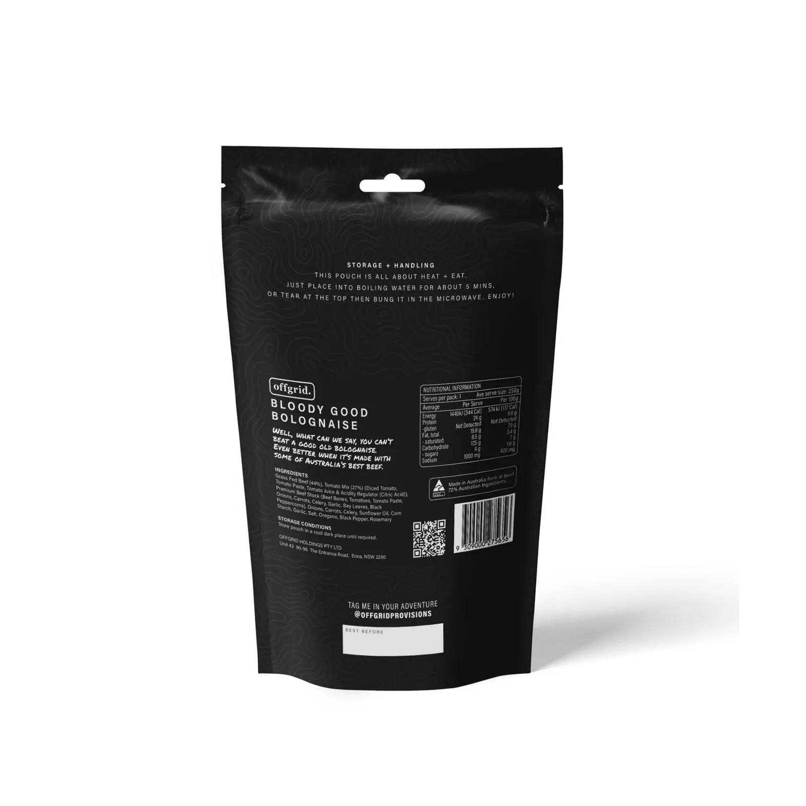 Enjoy a true taste of home wherever you roam with this all-natural, shelf-stable bolognaise made from premium Australian pasture-raised beef. Packed with rich flavour from real tomatoes, slow-cooked beef stock, herbs, and veg, it’s the ideal hearty meal for campers, hikers, and off-grid living.