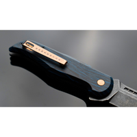 Inspired by the Satin Bowerbird the Bowerbird Blue pocket knife combines bold design with tactical-grade toughness. Its handle, crafted from layered G10 (Garolite), offers military-grade durability—resistant to dents, moisture, chemicals, and extreme environments—ensuring this EDC will last through years of rugged outdoor adventures. The stonewashed drop-point blade, made of Sandvik 14C28N steel at 58 HRC with a triple-bevel grind and finger slot enhancements, delivers a robust, precise edge that’s easy to deploy using the smooth flipper tab and caged ceramic ball-bearing pivot system.